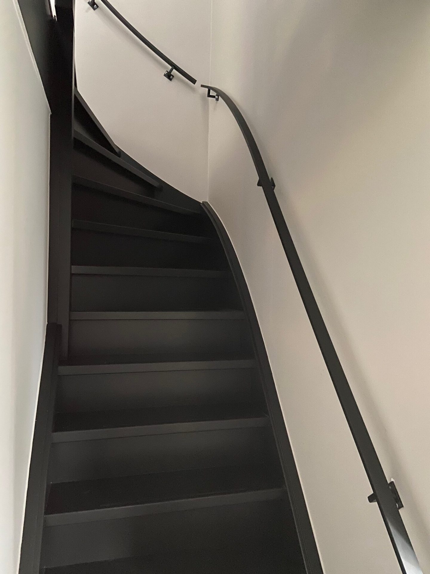 Platte stalen trapleuning, op maat gebogen