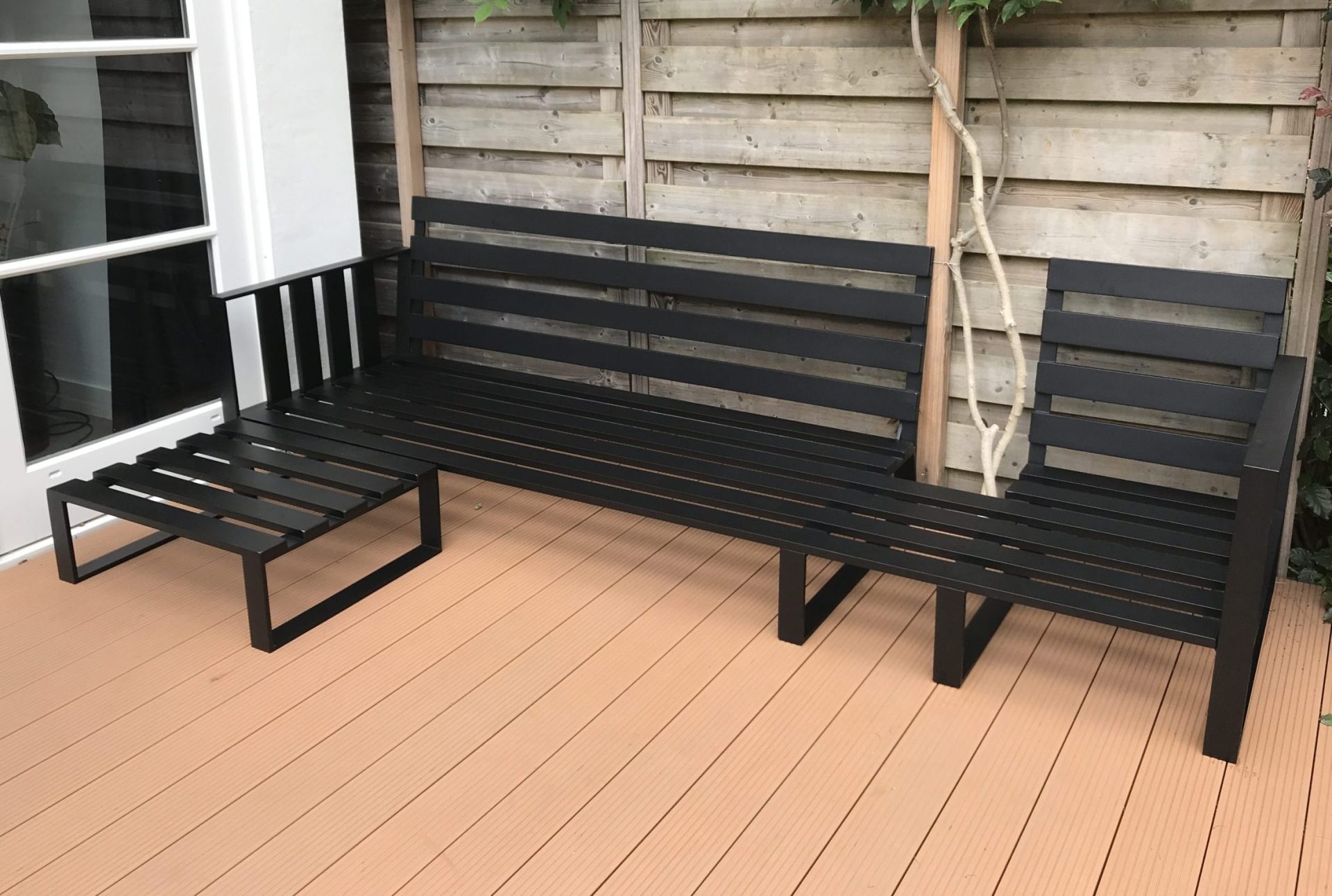 We mochten een aluminium loungebank op maat maken. De klant wilde graag rekening houden met de plantenstam, die ook door het terras gaat. Daarom hebben we een uitsparing gemaakt in het frame. Door zorgvuldig in te meten is het ontwerp tot stand gekomen.
